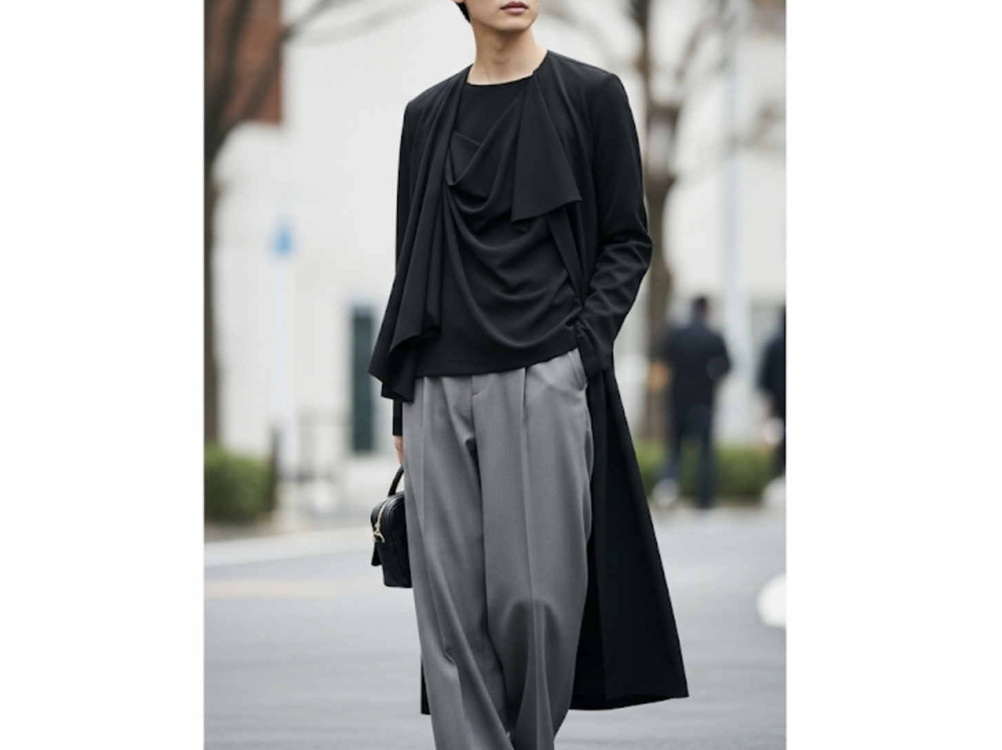 フリルやリボン、派手なプリントといった要素はそぎ落とされ、服のフォルムやカッティングそのものの美しさが重視されます。